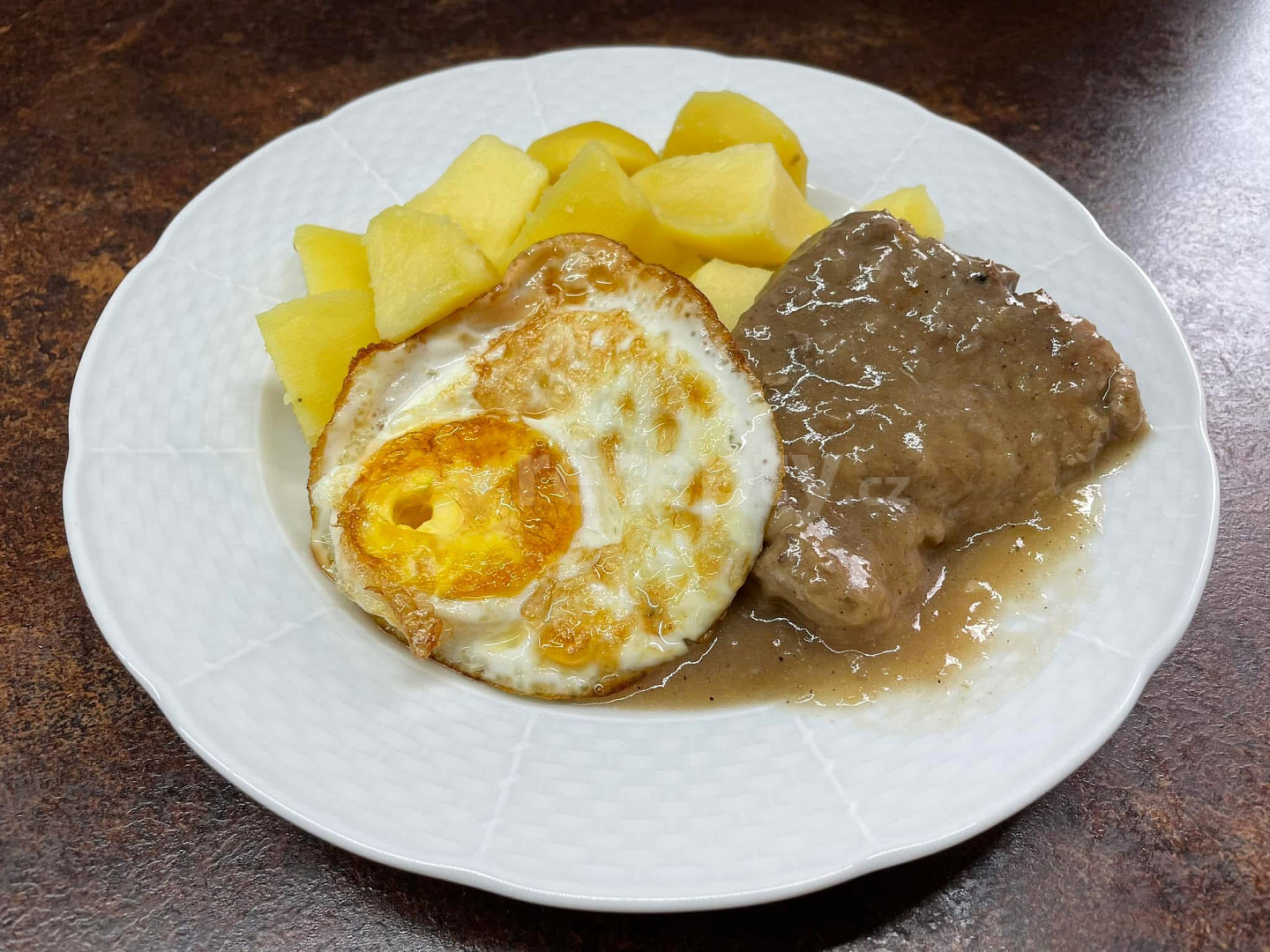 kýta vepřová, cibule, kosti vepřové, sádlo vepřové, mouka hladká, kmín mletý, pepř mletý, koření nové koření, bobkový list, sůl, vejce