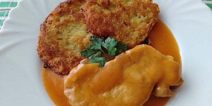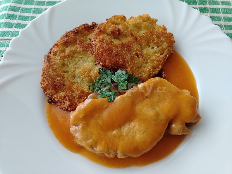 pečeně vepřová, cibule, mrkev, olej, vývar masový, smetana ke šlehání, mouka hladká, česnek granulovaný, sůl, pepř mletý