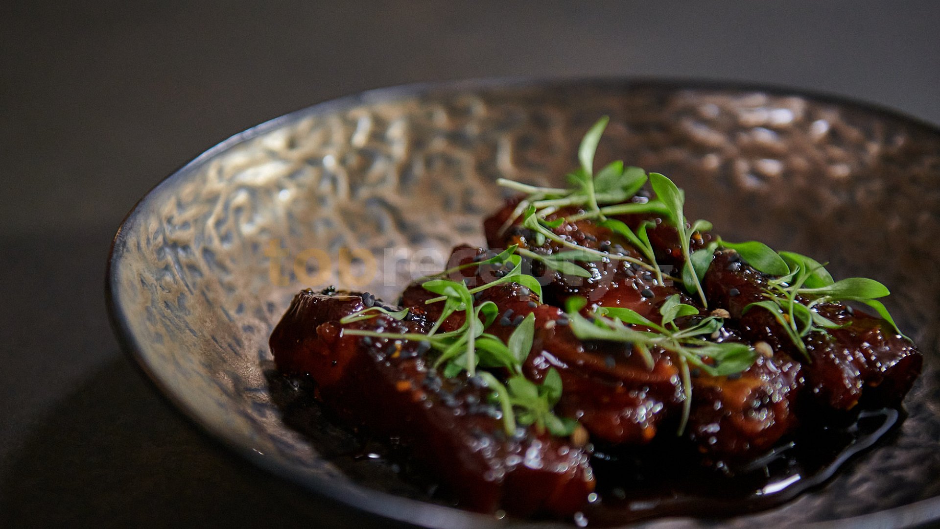 žebra vepřová, sůl, cukr krupice, pepř mletý, česnek, ocet, vývar masový, cukr krupice, chilli paprika čerstvá, pepř mletý, omáčka rybí, máslo, šťáva citronová, koriandr, semínka sezamová černá
