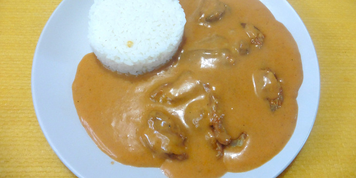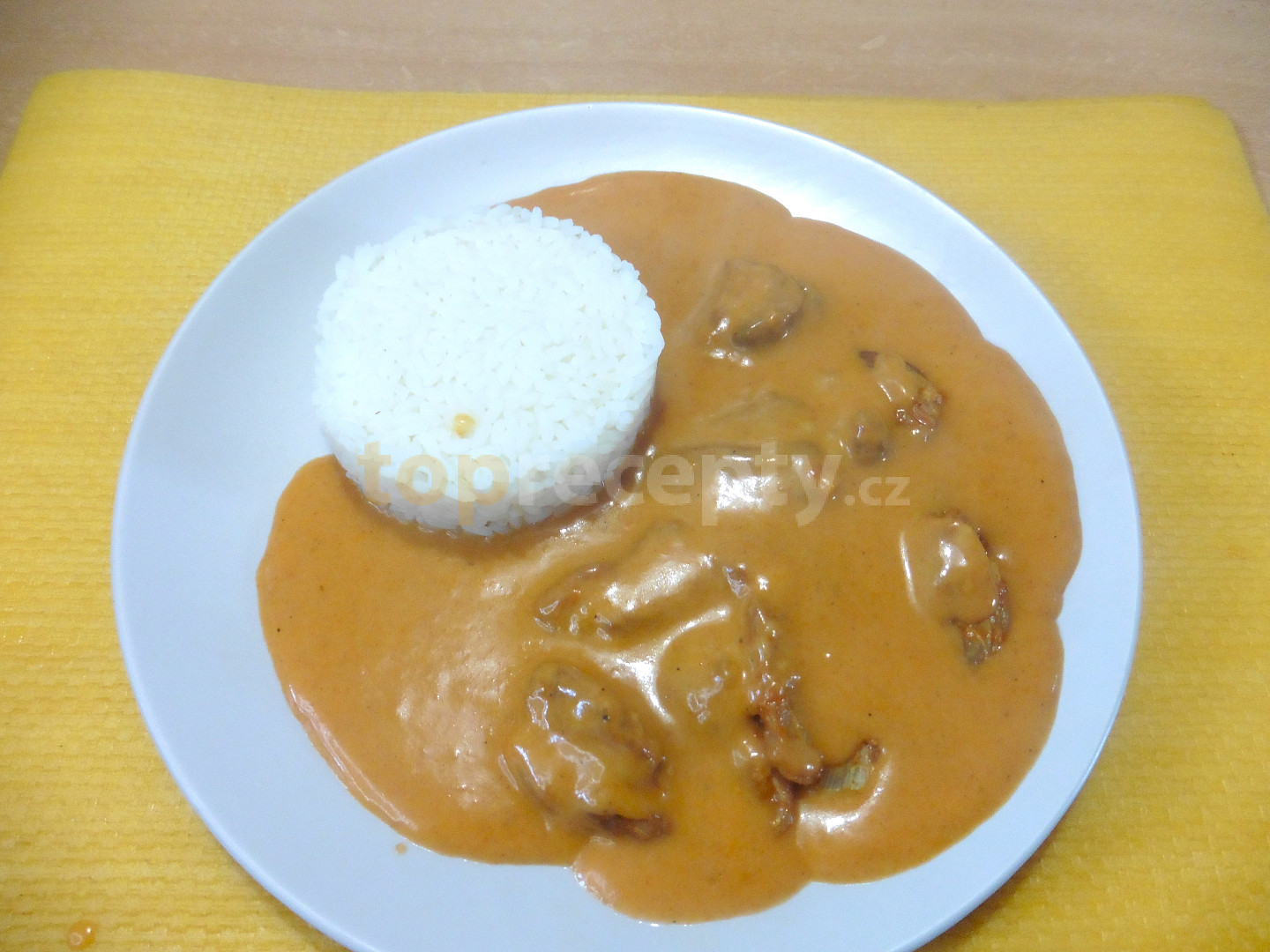 plec vepřová, cibule, olej, pepř, sůl, paprika sušená sladká, vývar masový, smetana na vaření, šťáva citronová, mouka hladká