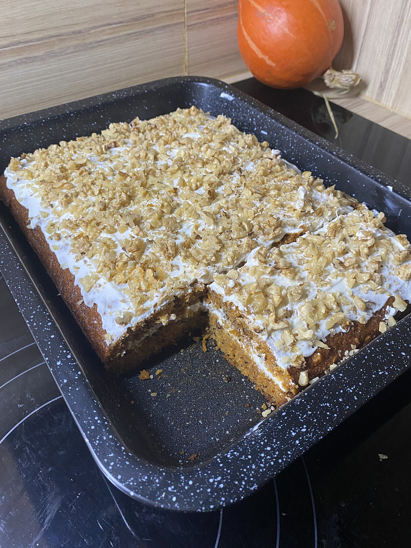 mouka polohrubá, cukr, soda jedlá, sůl, skořice, olej, vejce, mrkev, jablko, ořechy vlašské, tvaroh odtučněný, cukr, šťáva citronová, ořechy