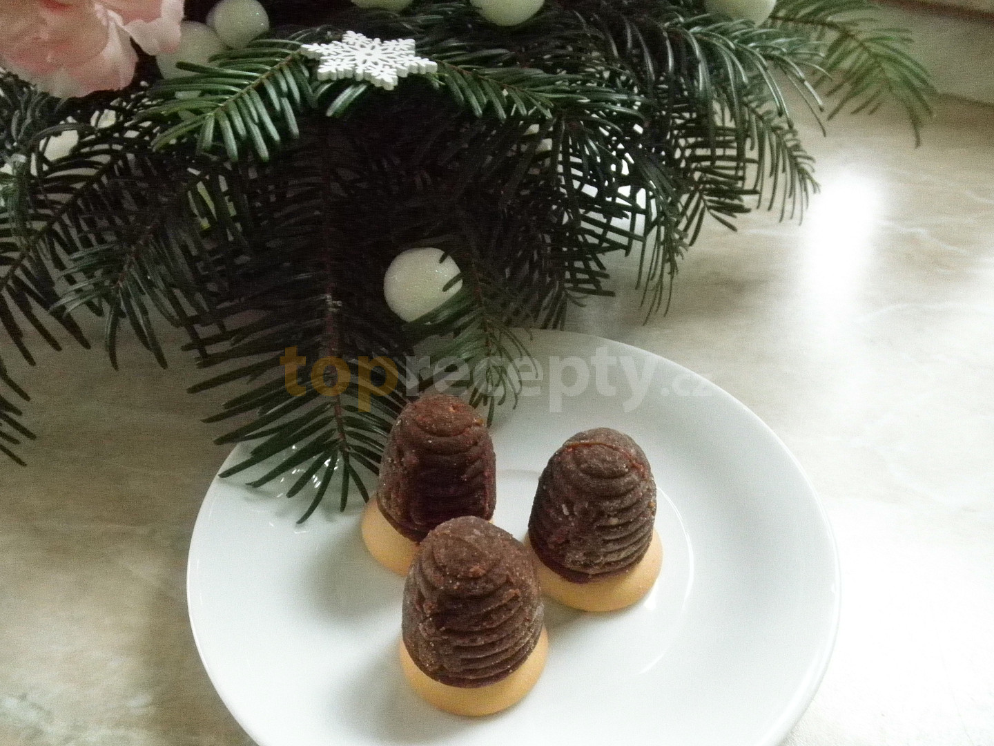 piškoty, ořechy vlašské, máslo, kakao, mléko, kakao, rum, máslo, koňak vaječný, piškoty, cukr moučkový