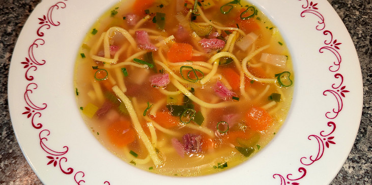 skelet kuřecí, krk kachní, voda, sůl, koření nové koření, jalovec, pepř celý, bobkový list, šalvěj, mrkev, petrželka kořenová, celer, libeček, celer, cibule, česnek, bujón slepičí