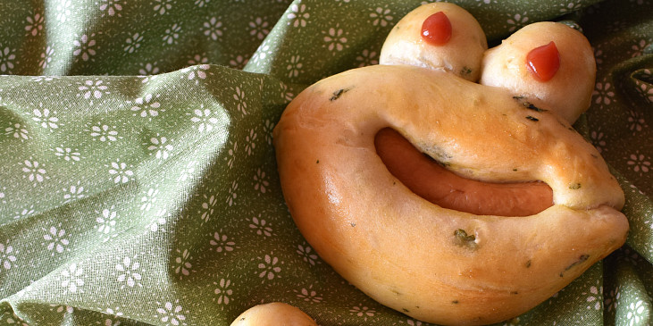 voda, olej, cukr, sůl, mouka, droždí, list medvědího česneku, párky