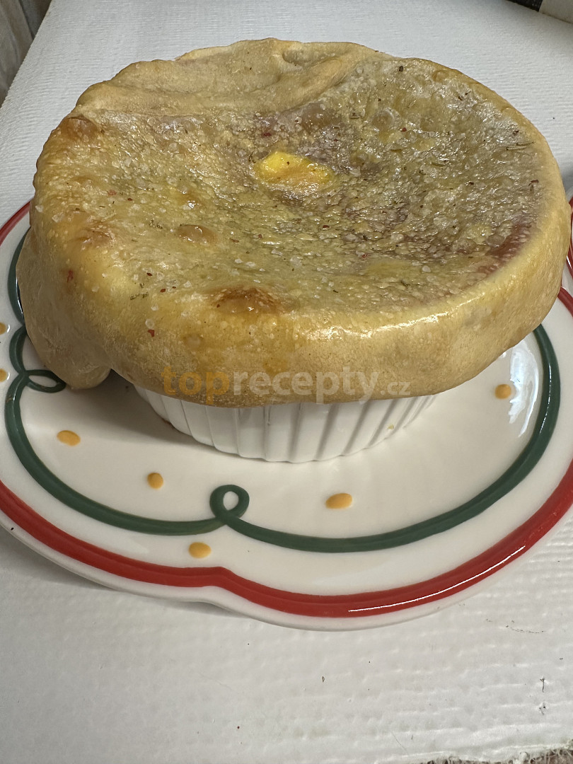 řepa červená, brambory, cibule, česnek, máslo, ocet balsamiko, vývar zeleninový, bobkový list, těsto listové, sůl, koření černé, omáčka worcesterová, semínka slunečnicová, vejce, smetana