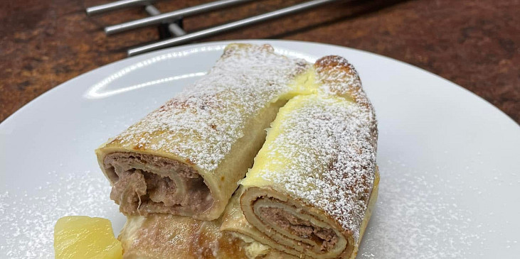 mléko, mouka hladká, vejce, cukr vanilkový, sůl, olej, tvaroh kostka, nutella, ananas, cukr, mléko, smetana zakysaná, vejce, cukr vanilkový, máslo, strouhanka
