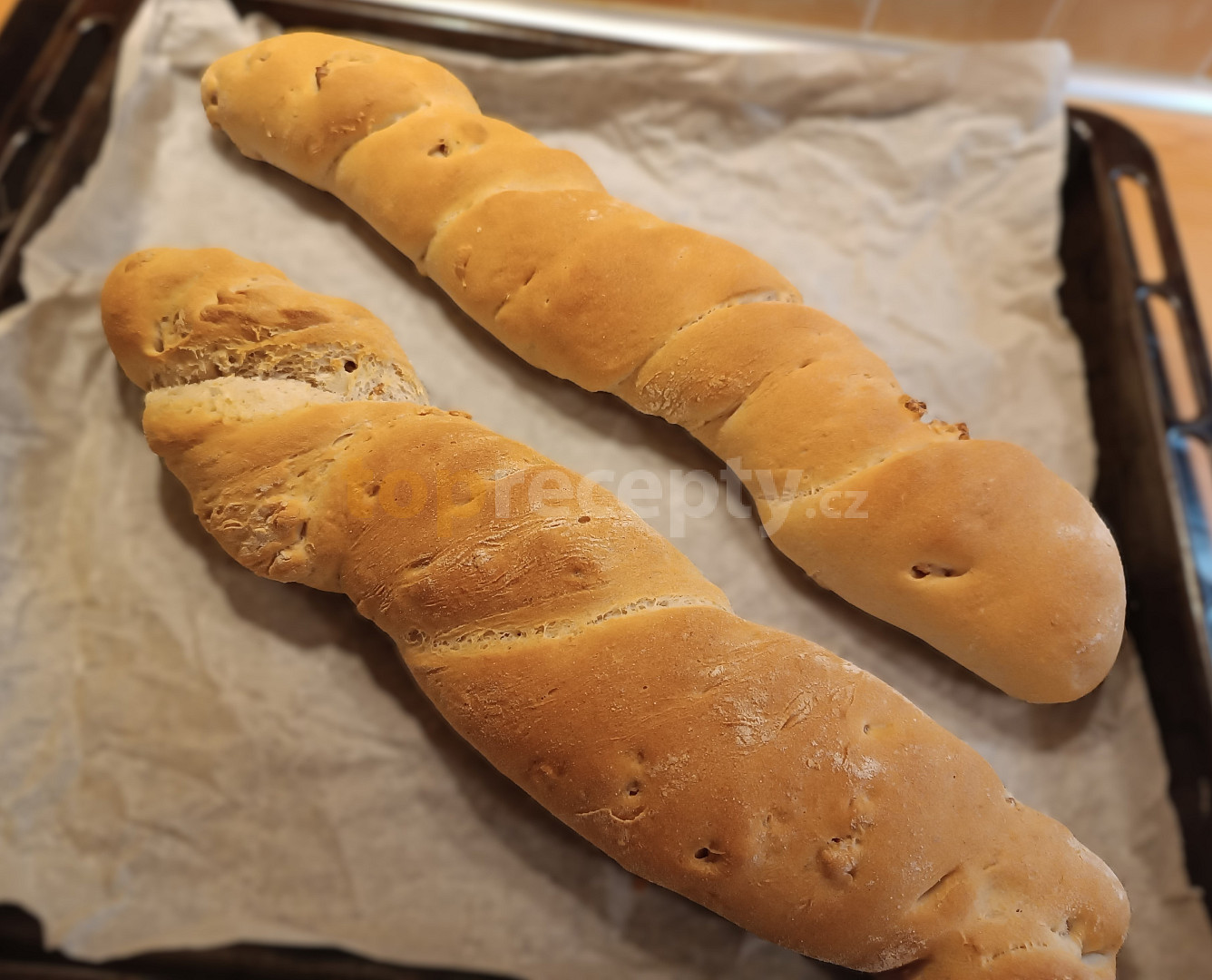 mouka hladká, mouka žitná chlebová, olej, jogurt bílý, voda, sůl, cukr, droždí čerstvé, ocet, ořechy vlašské