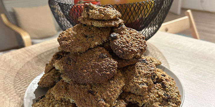 semínka sezamová, semínka slunečnicová, brusinky sušené, vejce, máslo, cukr, mouka hladká, vločky ovesné, kypřící prášek do pečiva