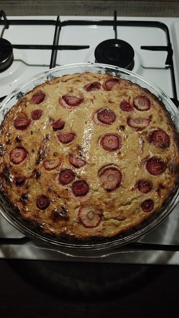 mouka špaldová celozrnná, vločky ovesné, kypřící prášek do pečiva, cukr třtinový, máslo, vejce, rebarbora, tvaroh ve vaničce, jogurt bílý, vejce, banán, rybíz, cukr třtinový